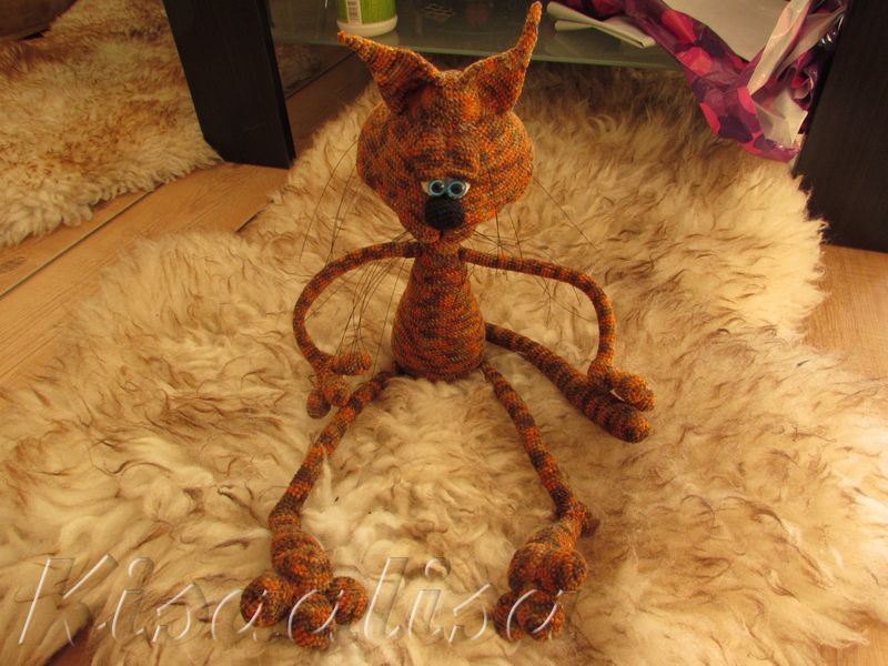 Кот Остап, связан по мастер-классу Светланы Перцевой. Использована турецкая пряжа ICE Chenille Thin Khaki Gold Brown Shades, крючок Кловер Амур 1,5. Ростик от макушки до кончиков пальчиков 50 см.